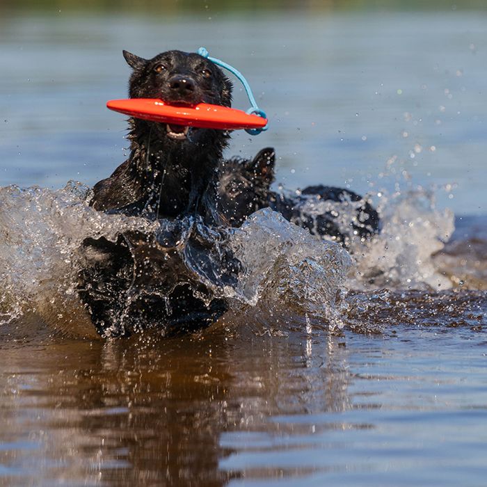 Pientä pelastuskelluketta muistuttavan lelun varaan ei kannata luottaa henkeään, mutta kesän se pystyy kyllä pelastamaan! Kuminen vesilelu soveltuu täydellisesti oman elämänsä hengenpelastajalle, joka käy rohkeasti kohti kuohuvia aaltoja. Kiekkomainen lelu köydellä on helppo heittää kauas ja palauttaa rantaan, minkä lisäksi se muljahtelee hauskasti rantavedessä koiran leikkiessä.