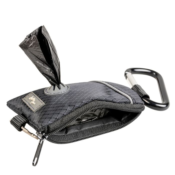 Säänkestävästä, vahvasta nylonista valmistettu kakkapussikotelo reippaaseen menoon. Kotelon etupuolella on kumivahvisteinen ulosvetoreikä, jonka kautta pussit on helppo vetää ulos yksi kerrallaan.