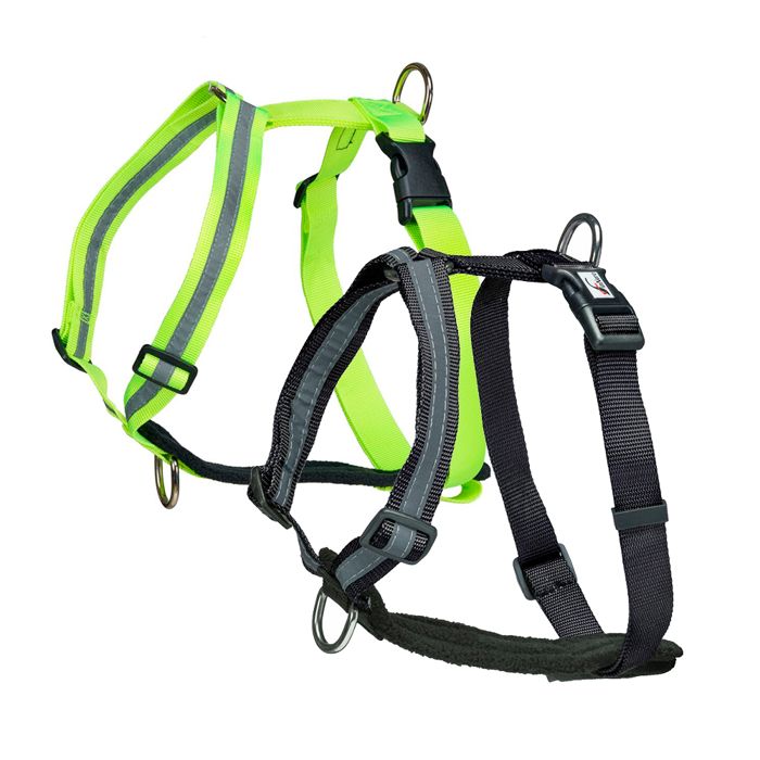Mukautuva ja ergonominen, Y-mallinen Finnero Salon Valjas heijastimilla on helppo säätää koiralle juuri sopivaksi ja istuvaksi.