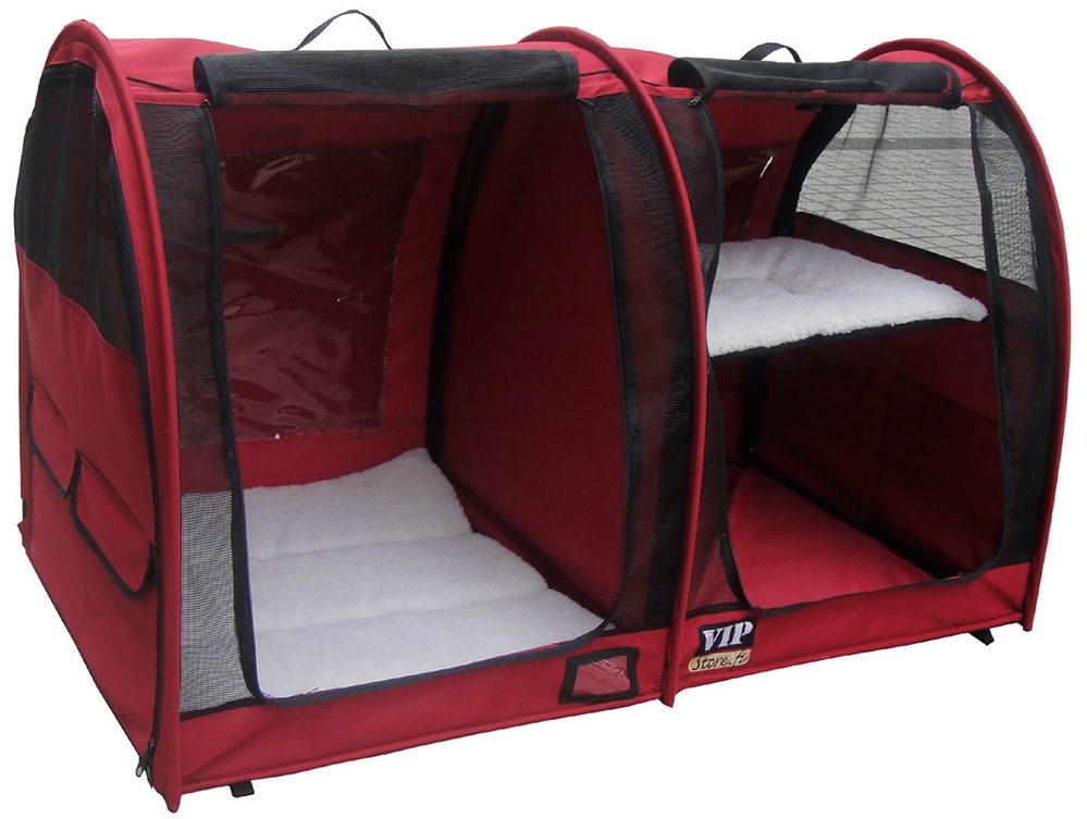 Siistit ja kevyet kaksiosaiset kankaiset näyttelyhäkit kissalle.