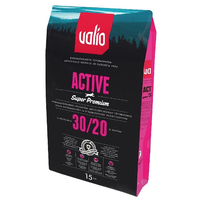 Valio Active on erityisesti harrastus- ja työkoirille suunniteltu tehokas täysravinto, joka tyydyttää aktiivisen koiran energiantarpeen. Ruoka sopii kaikenkokoisille- ja rotuisille koirille. Se on erinomainen valinta esimerkiksi reki- ja metsästyskoirille sekä näyttelykoirille, joiden lihakset vaativat ylläpitoa.
