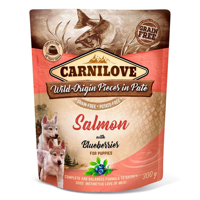 Olet arvostelemassa: Carnilove, märkäruokapatee, Lohi & mustikka, 300 g, Koiranpennuille