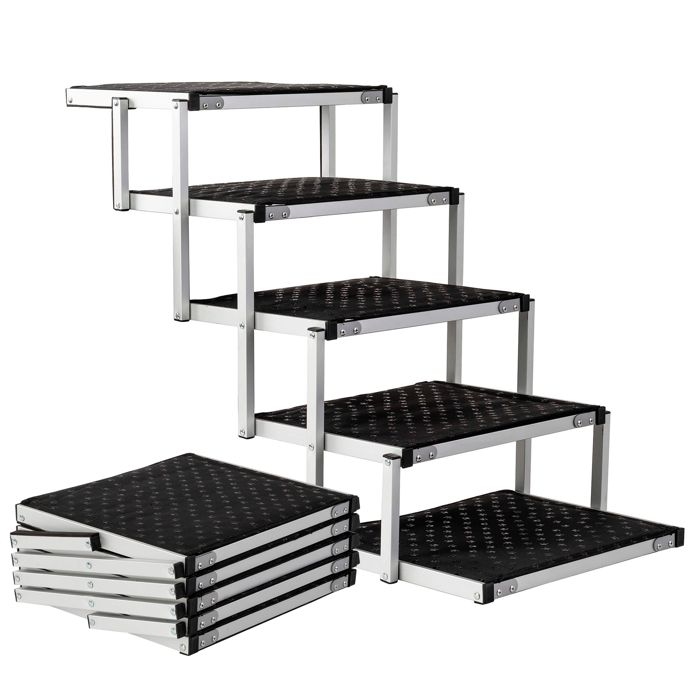 Helposti siirreltävät, avattavat portaat, joita pitkin lemmikin on helppo kiivetä esim. autoon tai muille korkeille paikoille. Portaissa on kestävä, mutta kevyt alumiinirunko. Porrastasanteet ovat vaneria, jotka on päällystetty vaahtomuovilla ja muovitetulla, vahvalla kaksinkertaisella oxford-kankaalla. Kankaan pinnassa on kuminen liukuestekuviointi. Rappusia pitkin lemmikki voi kiivetä niin autoon kuin vaikkapa trimmauspöydälle, sänkyyn ja muille korkeille paikoille kotona ja reissussa.