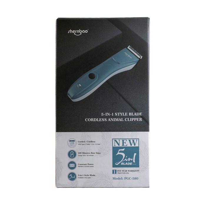 ‌Shernbao PGC-580 on kevyt (vain 244 g), tehokas ja ergonomisesti muotoiltu trimmauskone, joka tekee trimmaamisesta sujuvaa ja miellyttävää. Sen hiljainen käyntiääni (enintään 65 dB) tekee siitä erityisen sopivan myös herkemmille ja säikyille koirille. Trimmauskonetta voidaan käyttää sekä johdollisena että johdottomana, mikä tuo joustavuutta työskentelyyn ja tekee siitä erinomaisen valinnan myös matkakäyttöön. Akkukäytössä kone toimii jopa 200 minuuttia yhdellä 150 minuutin latauksella. Koneessa on titaanipäällysteinen keraaminen 5-in-1-terä, joka leikkaa erittäin sujuvasti ja tasaisesti. Terän leikkauspituus on säädettävissä viiteen eri pituuteen: 0.6, 1.0, 1.6, 2.2 ja 2.8 mm. Terä on lisäksi helppo irrottaa puhdistusta varten, ja sen leveys (4,5 cm) tekee siitä ihanteellisen myös tassujen ja tarkkaa työtä vaativien alueiden siistimiseen.