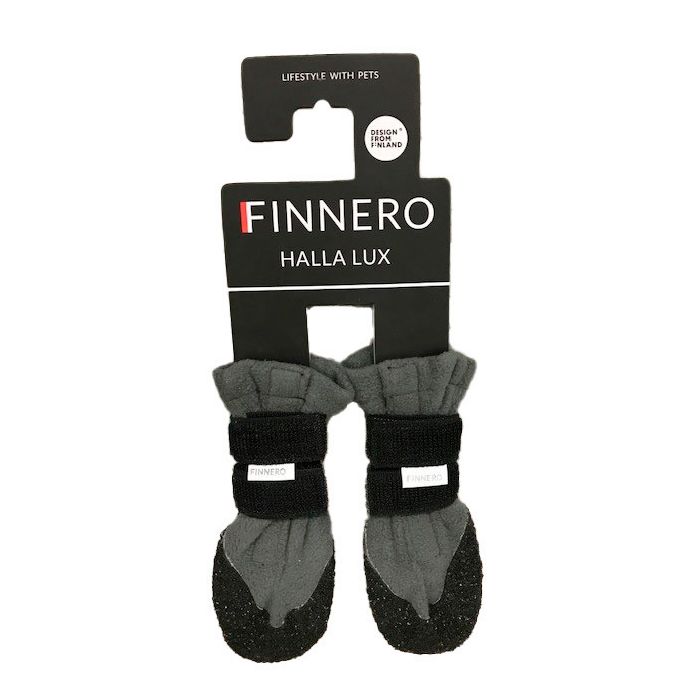 Super suosittujen Halla-tossujen seuraajaksi suunnitellussa Halla Lux -tossussa on rouheinen ja joustava pohjamateriaali, joka suojaa tassuja pakkasen lisäksi myös teräviltä kiviltä sekä tiesuolalta, minkä vuoksi tossut soveltuvat erinomaisesti vähälumisillekin alueille. Suomalainen TopGrip® -materiaali kestää käyttöä ja tarjoaa pitoa talven liukkauteen.