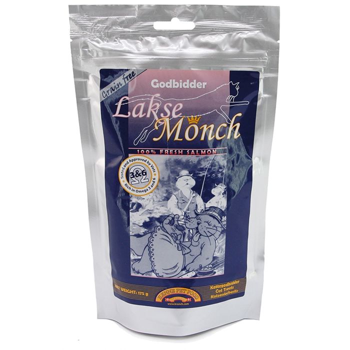 100 % lohesta valmistetut luonnolliset ja viljattomat makupalat kissoille. Makupalojen lohi on hellävaraisesti kuivattu, jonka ansiosta kaikki sen myönteiset ominaisuudet on pystytty säilyttämään. Lohi on helposti sulavaa ja sisältää runsaasti välttämättömiä Omega 3 & 6 -rasvahappoja. Makupalat eivät sisällä keinotekoisia lisä- tai säilöntäaineita. Lakse Monch -makupalat ovat todiste siitä, että terveellinen voi olla myös vastustamattoman herkullista!