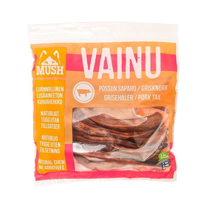 Kotimainen, herkullinen ja rapea välipala lihansyöjille. MUSH VAINU Possunsaparo on kotimainen, maistuva ja terveellinen välipala, joka soveltuu kaikkiin lemmikin elämänvaiheisiin. Maistuva possunsaparo sopii kaikenkokoisten koirien välipalaksi. Sitkeä koostumus sekä täyteläinen aromi miellyttävät vaativampaakin kulinaristia.