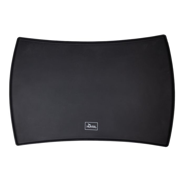 ‌Hunterin tyylikäs musta ruokakuppialusta on käytännöllinen valinta, kun haluat suojata lattiaa roiskeilta ja ruoantähteiltä. Joustava ja muotonsa pitävä elintarvikekelpoinen silikoni sekä korotettu reuna varmistavat, että nesteet ja muruset pysyvät alustalla ja lattia säilyy puhtaana ja kuivana. Liukumaton materiaali pitää alustan tukevasti paikallaan.