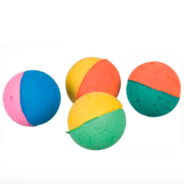 Neljä värikästä vaahtokumipalloa sisältävä pakkaus on varma hitti! Pehmoiset pallot pomppivat hauskasti ja niistä saa hampailla hyvän otteen. Jos kissasi rakastaa noutoleikkejä tai saaliinsa kanniskelua muuten vaan, ovat vaahtokumipallot täydellinen valinta.