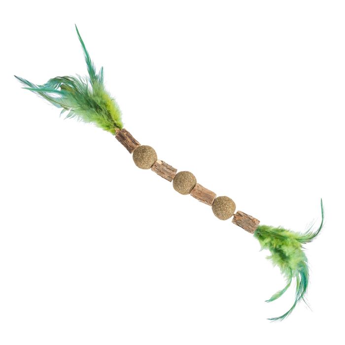 ‌Luonnollinen kissan aktivointilelu matatabista, kissanmintusta ja höyhenistä. Matatabi on aasialainen kasvi, joka tunnetaan kissaa rentouttavasta ja leikkiin innostavasta vaikutuksestaan. Kissanminttupallot lisäävät houkuttelevuutta, ja leluun pureminen auttaa mekaanisesti puhdistamaan kissan hampaita – hauskaa ja hyödyllistä samassa paketissa. Lelu koostuu pätkitystä matatabi-kepistä, jonka välissä on kissanminttupallot. Lisäksi lelun molemmissa päissä on höyheniä, jotka herättävät kissassa luontaisen saalistusvietin.