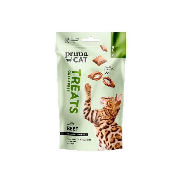 Naudanmakuinen herkku tarjoaa yllättävän makuelämyksen suussa rouskuvan rapsakalla kuorellaan sekä pehmeällä sisuksellaan. Makupalan funktionaalinen ominaisuus auttaa ehkäisemään karvapalloja kissan ruoansulatuksessa.