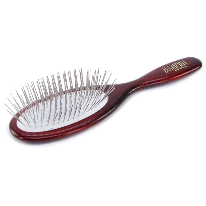 Piikkiharja pehmeällä kumityynyllä. Pitkät (25 mm), nupittomat piikit ulottuvat pohjavillarotujen paksun turkin läpi ja selvittävät turkin kauttaaltaan. Tyylikäs, muotoiltu puuvarsi, josta saa hyvän otteen.