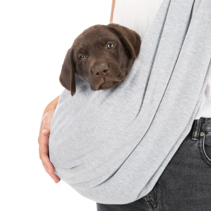 Kätevässä kantoliinassa kannat väsyneen koiranpennun mukanasi.